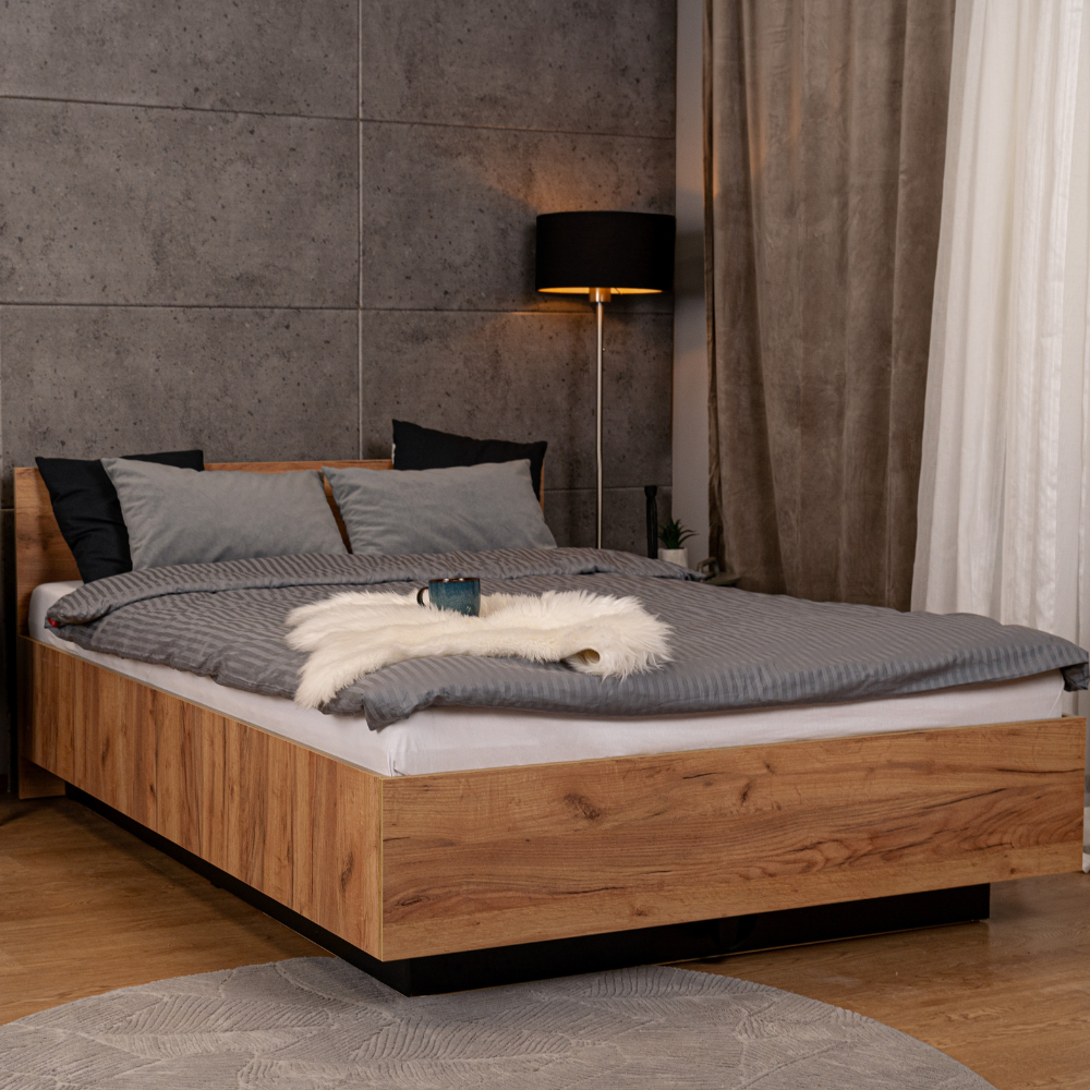 Lima – ein modernes Bett mit einem auffälligen, „schwebenden” Look. Hergestellt aus hochwertigen Möbelplatten, mit einem tiefen Bettkasten. Erhältlich in drei Farben – ideal für minimalistische und moderne Innenräume.