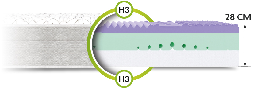 HOCHELASTISCHER HR H30 SCHAUMDer Schaum wurde aus Millionen von Bläschen gefertigt, sorgt für eine perfekte Anpassung der Matratze an die natürliche Körperform und bleibt dabei extrem leicht. Er zeichnet sich durch eine erhöhte Flexibilität aus, die den Nutzungskomfort erheblich erhöht und seine Lebensdauer verlängert. Dieses Material zeichnet sich durch außergewöhnliche Haltbarkeit und Beständigkeit gegen Verformungen aus. Ein weiterer Vorteil des HR -Schaums ist seine poröse Struktur, die eine hervorragende Luftzirkulation bietet und die Entwicklung von Pilzen und Schimmel verhindert.