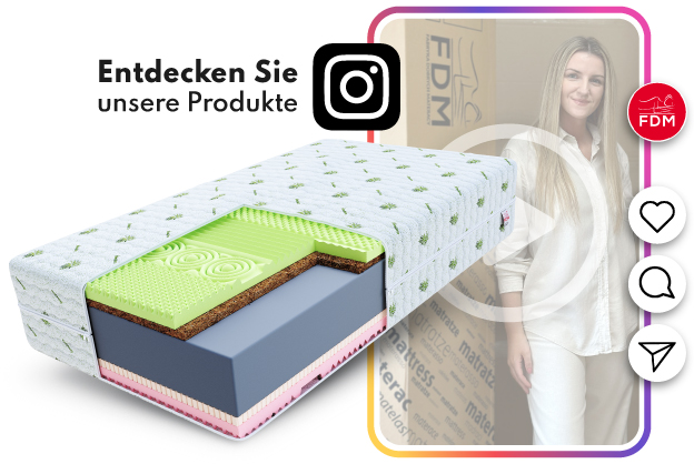 POLYURETHAN - SCHAUMDer Schaum mit erhöhter Festigkeit und guter Luftdurchlässigkeit bietet eine hervorragende Wärmeisolierung. Es verformt sich nicht, macht die Matratze sehr bequem und garantiert Schlafkomfort. Hochwertiger Schaumstoff bietet eine sehr gute Stütze für die Wirbelsäule. Der Schaum ist eine gute Lösung für Paare und Kinder. Die gegenseitigen Bewegungen der anderen Person sind nicht spürbar.