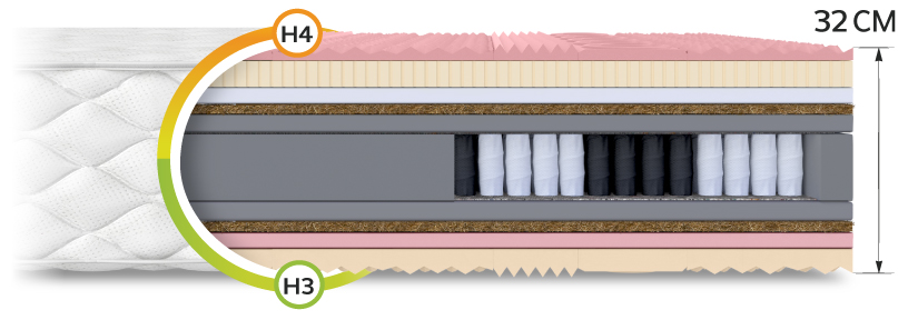 7 Zonen H3 H4 Höhe 32 cm Latex Kokos Visco