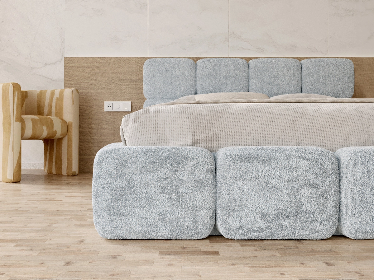 Bei der Gestaltung des Polsterbettes DELICATO wollten wir ein Möbelstück schaffen, das in jeder Hinsicht bequem ist, aber auch gut aussieht und äußerst langlebig ist. Aus diesem Grund haben wir einen Velours-Bezugsstoff, CLEO, verwendet. Er zeichnet sich durch seine feine Textur aus und ist gleichzeitig sehr widerstandsfähig, auch gegenüber Sonnenlicht. Der Bezugsstoff CLEO ist ein flauschiger und fleischiger Stoff mit Lammfellstruktur, optisch ansprechend und weich mit einer einzigartigen Haptik.