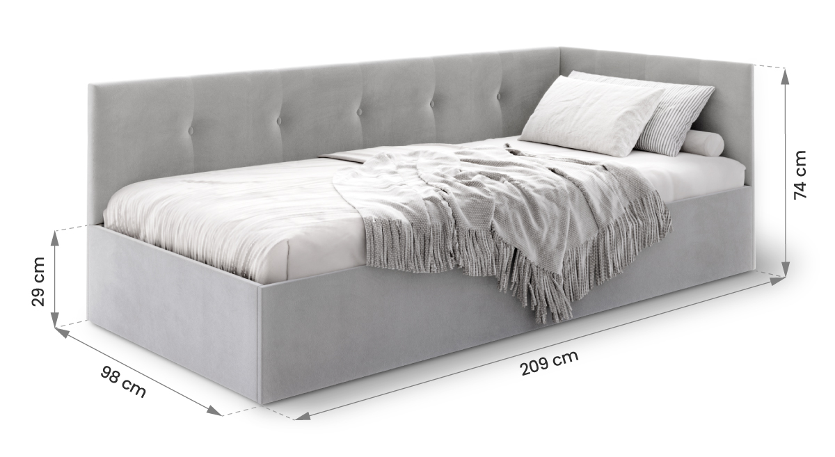 Ein besonderes Merkmal des Bettes sind die dekorativen Knöpfe (5 an der langen Seite, 3 an der kurzen). Der Bezug besteht aus dem eleganten TRINITY-Velours, der weich, samtig und gleichzeitig strapazierfähig ist – er fusselt nicht und ist abrieb- sowie schmutzresistent. So passt EDDY 2 perfekt ins Jugendzimmer ebenso wie ins moderne Schlafzimmer für Erwachsene.