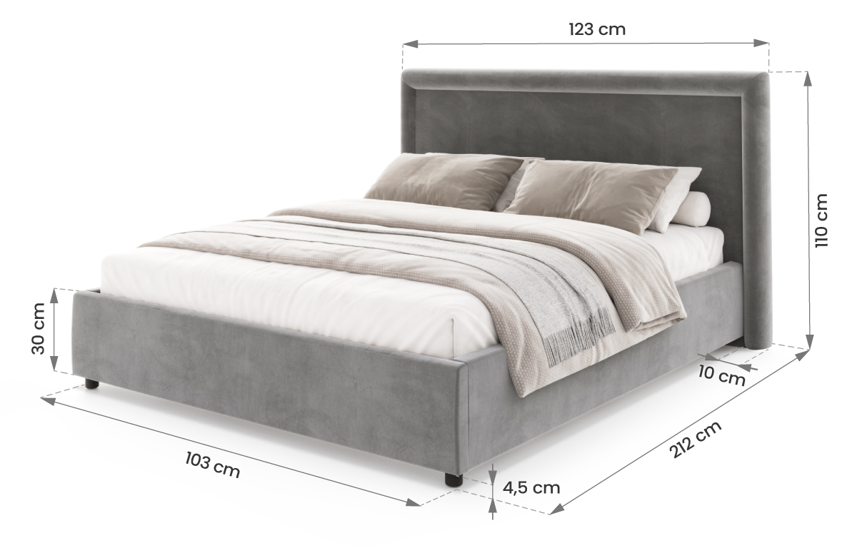 Polsterbett NOBILE– Produktdetails - Großer Bettkasten (bis zu 720 L) - Hochklappbarer Metall-Lattenrost (bis 400 kg belastbar) - Dekoratives Kopfteil - Stoffart und -farbe frei wählbar - Solide und sichere Konstruktion - Außenmaße des Bettes: 123 × 212 cm - Liegefläche: 90 × 200 cm - Einfache Montage: Lieferung mit Montagesatz und Anleitung -Lieferung: Bis in den 4. Stock (ohne Aufzug)