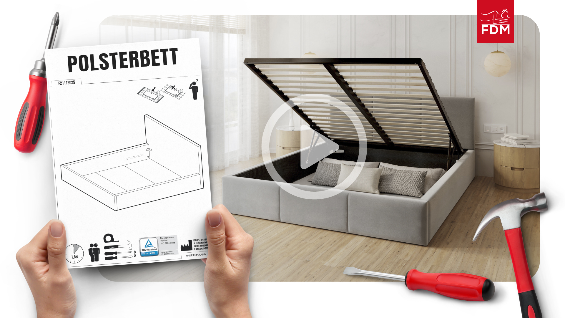 Wir wissen, dass ein Bett eine Anschaffung ist, die viele Jahre lang hält. Damit es Ihnen in dieser Zeit gute Dienste leistet, muss es robust und gut konstruiert sein und vor Beschädigungen geschützt werden. Aus diesem Grund haben wir für die Konstruktion eine hochwertige Möbelplatte verwendet. Es zeichnet sich durch hohe Festigkeit aus. Die Elemente im Bett werden durch Konfirmanden, d.h. spezielle Schrauben mit großem Durchmesser, verbunden. Darüber hinaus werden zur Verstärkung Versteifungselemente aus Metall verwendet, die die gesamte Konstruktion stabil und fest machen und dafür sorgen, dass sie bei den Bewegungen der darauf schlafenden Personen nicht knarrt. Einfache und schnelle Montage. Jedes Bett wird mit einem Montagesatz und einer Anleitung geliefert. Überprüfen Sie die genauen Abmessungen des Bettes.